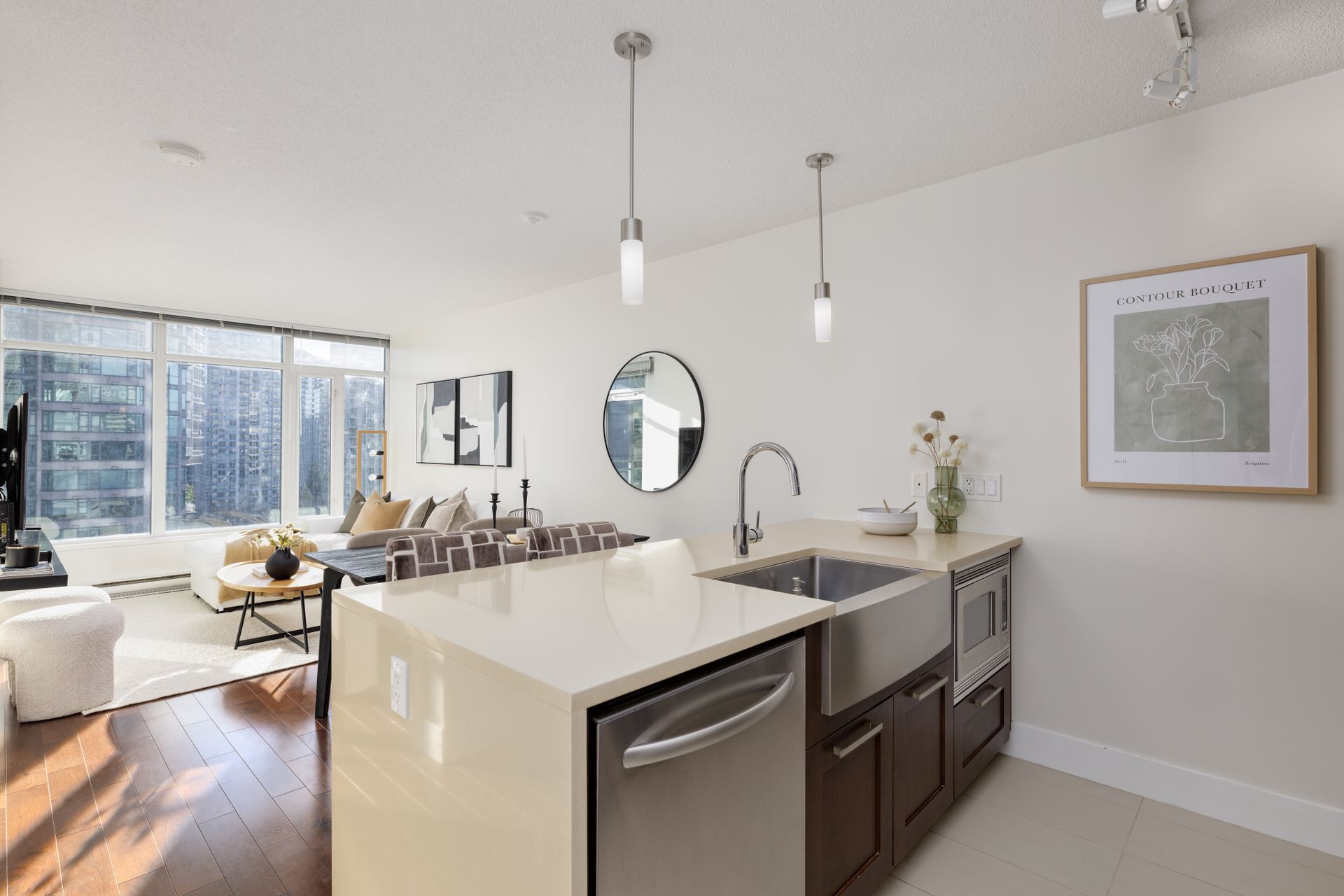 Welcome to The Beasley, ideally located where Yaletown meets Downtown Vancouver! This spacious one-bedroom + den offers a smart, open-concept layout with distinct living, dining, and workspace areas, ideal for urban living. Floor-to-ceiling windows flood the home with natural light, while the functional den provides versatility as a home office or extra storage. The well-maintained, pet-friendly building features incredible amenities, including a 24-hour concierge, gym, lounge, bike storage, and an 8th-floor dog park. Steps away from the Seawall, vibrant restaurants, shops, and transit. One parking and one storage locker included.