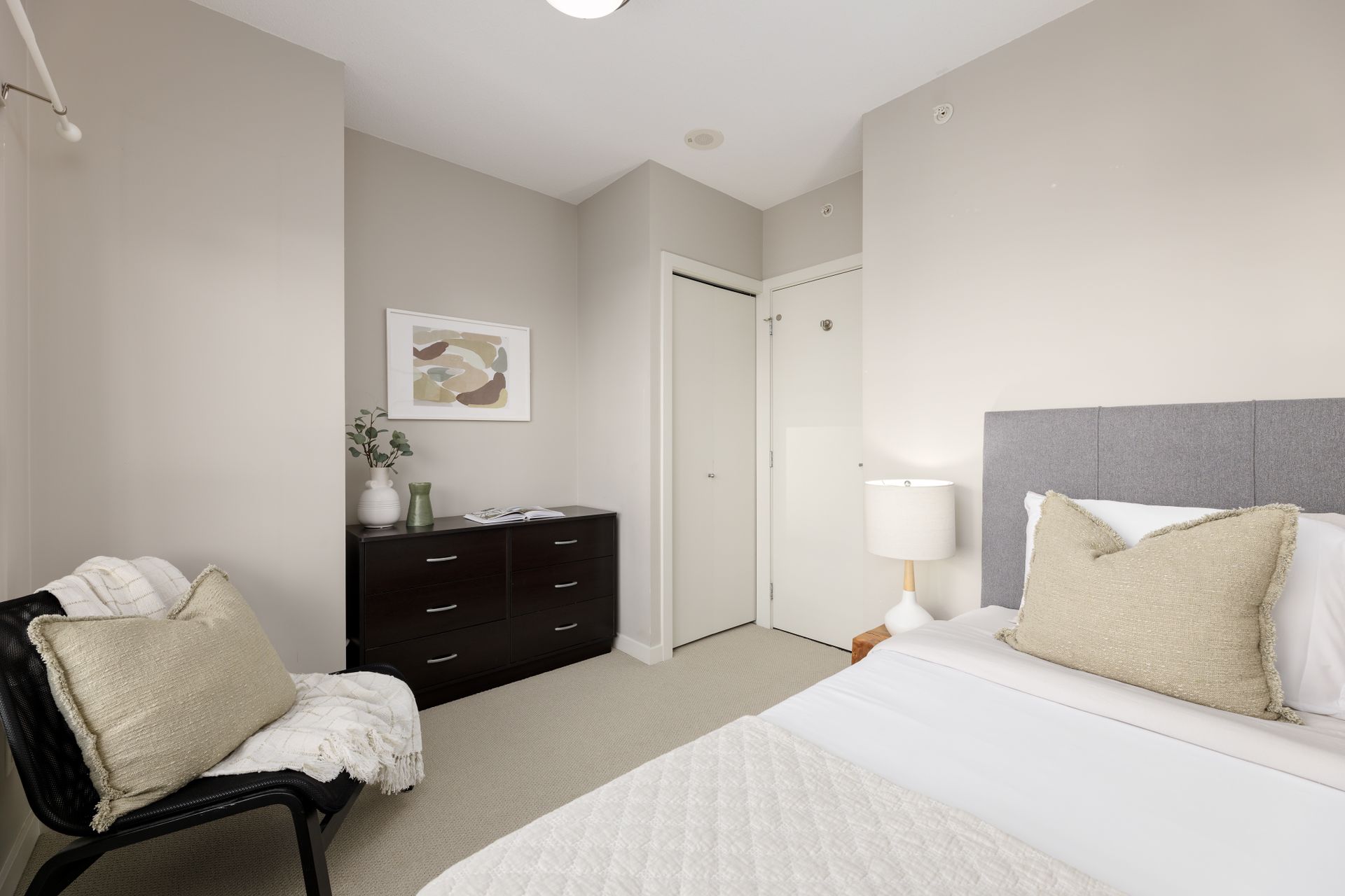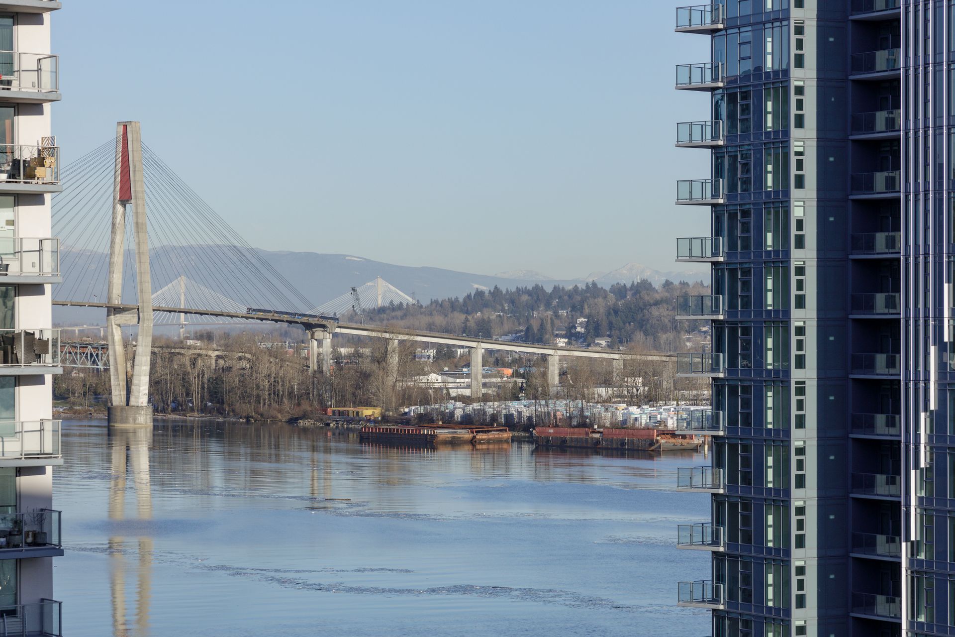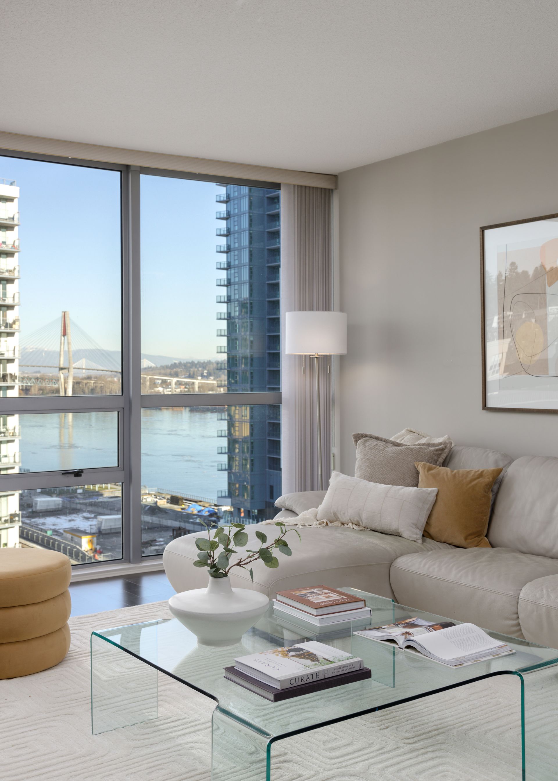 Welcome to Inter Urban, where modern living meets waterfront charm in the heart of Downtown New Westminster. This spacious 2-bedroom & 2-bathroom home features an open-concept layout with floor-to-ceiling windows, offering stunning Fraser River and city views. The 122 sq. ft. balcony is perfect for indoor-outdoor entertaining, whether you're enjoying morning coffee or hosting guests.