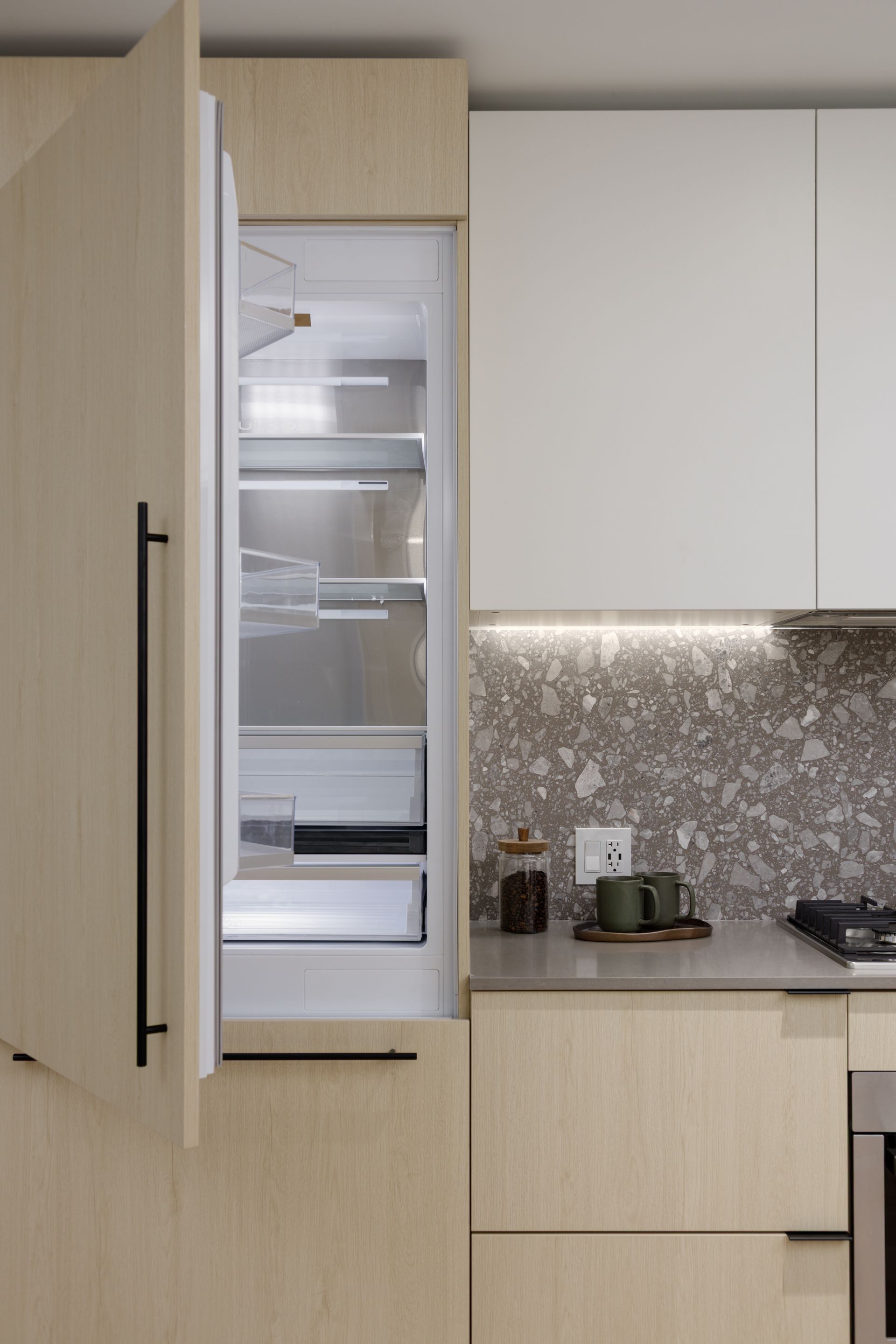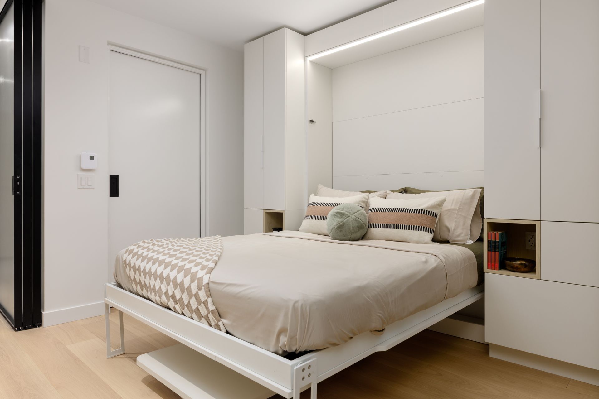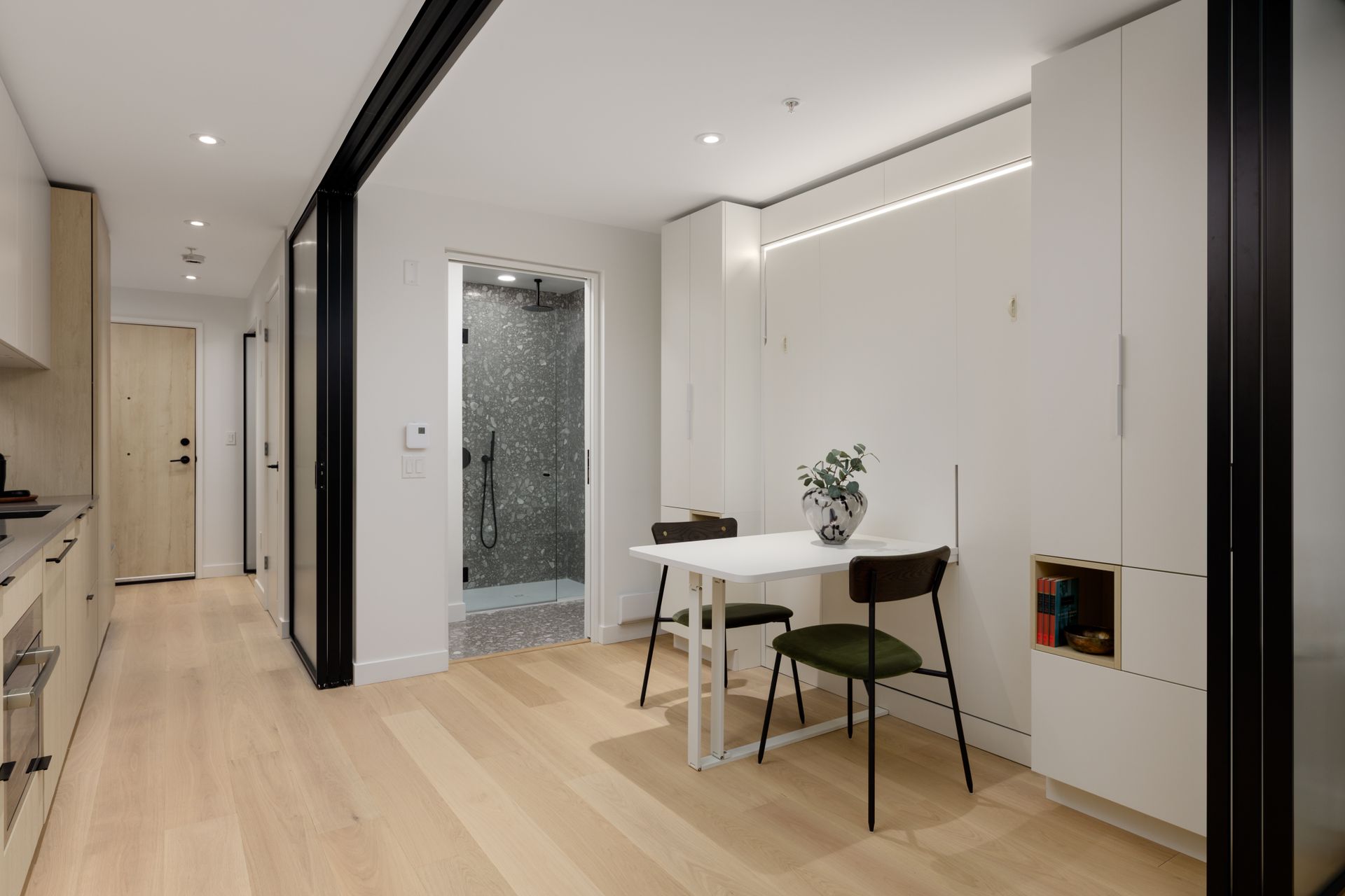 Welcome to The Saint George, a boutique collection of modern homes designed for today’s urban lifestyle. This thoughtfully crafted residence features 9’ ceilings and white oak engineered hardwood flooring throughout for a bright, refined feel. The signature Living Wall offers seamless millwork from entry to kitchen, providing integrated storage, an entertainment unit, and a built-in work-from-home desk. The sleek, fully integrated kitchen is equipped with a premium Bosch appliance package from Germany. Also featuring glass room dividers for flexible living and added privacy. Enjoy a rooftop social space, EV-ready parking, and peace of mind with a comprehensive 2-5-10 warranty.