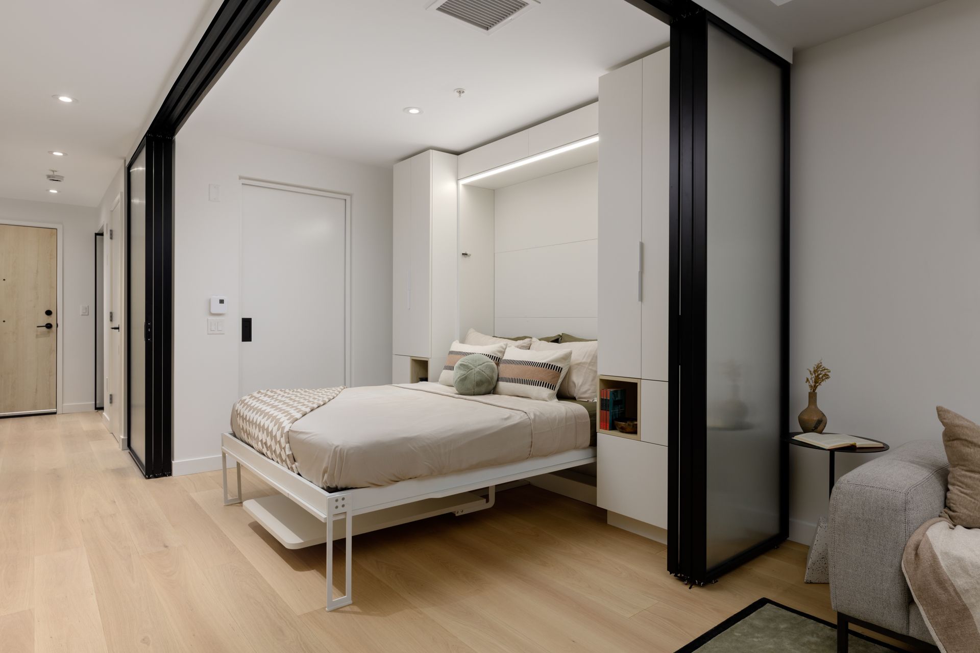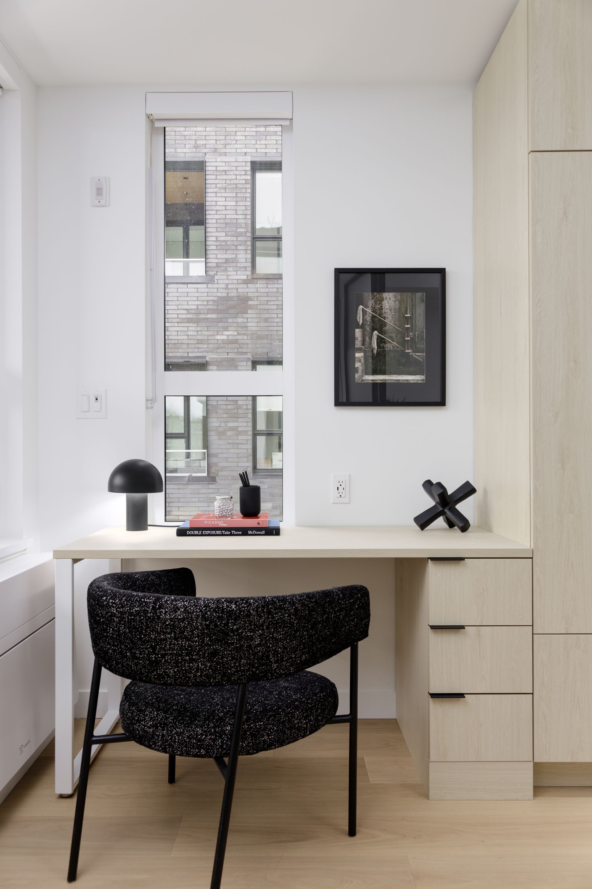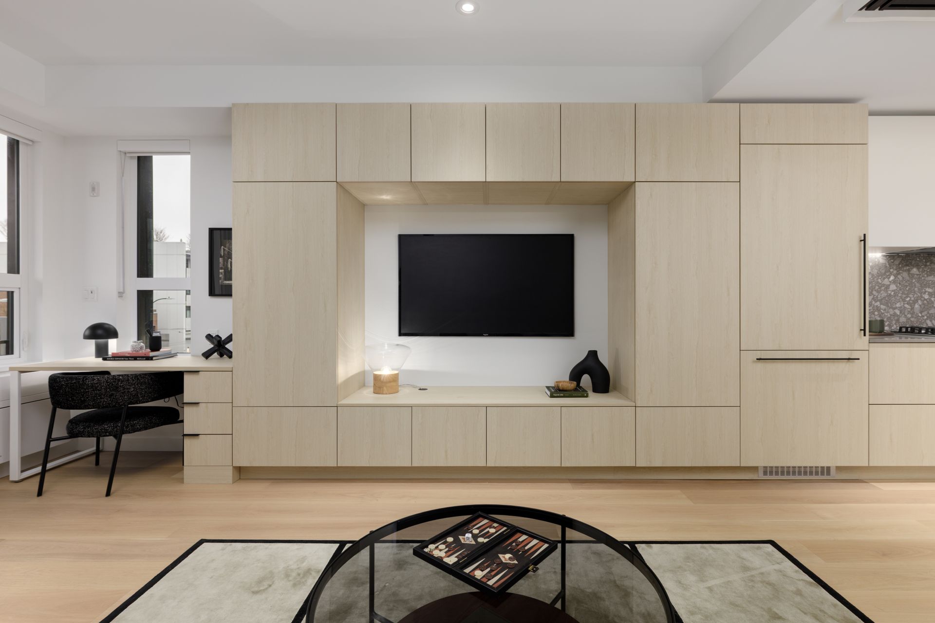 Welcome to The Saint George, a boutique collection of modern homes designed for today’s urban lifestyle. This thoughtfully crafted residence features 9’ ceilings and white oak engineered hardwood flooring throughout for a bright, refined feel. The signature Living Wall offers seamless millwork from entry to kitchen, providing integrated storage, an entertainment unit, and a built-in work-from-home desk. The sleek, fully integrated kitchen is equipped with a premium Bosch appliance package from Germany. Also featuring glass room dividers for flexible living and added privacy. Enjoy a rooftop social space, EV-ready parking, and peace of mind with a comprehensive 2-5-10 warranty.